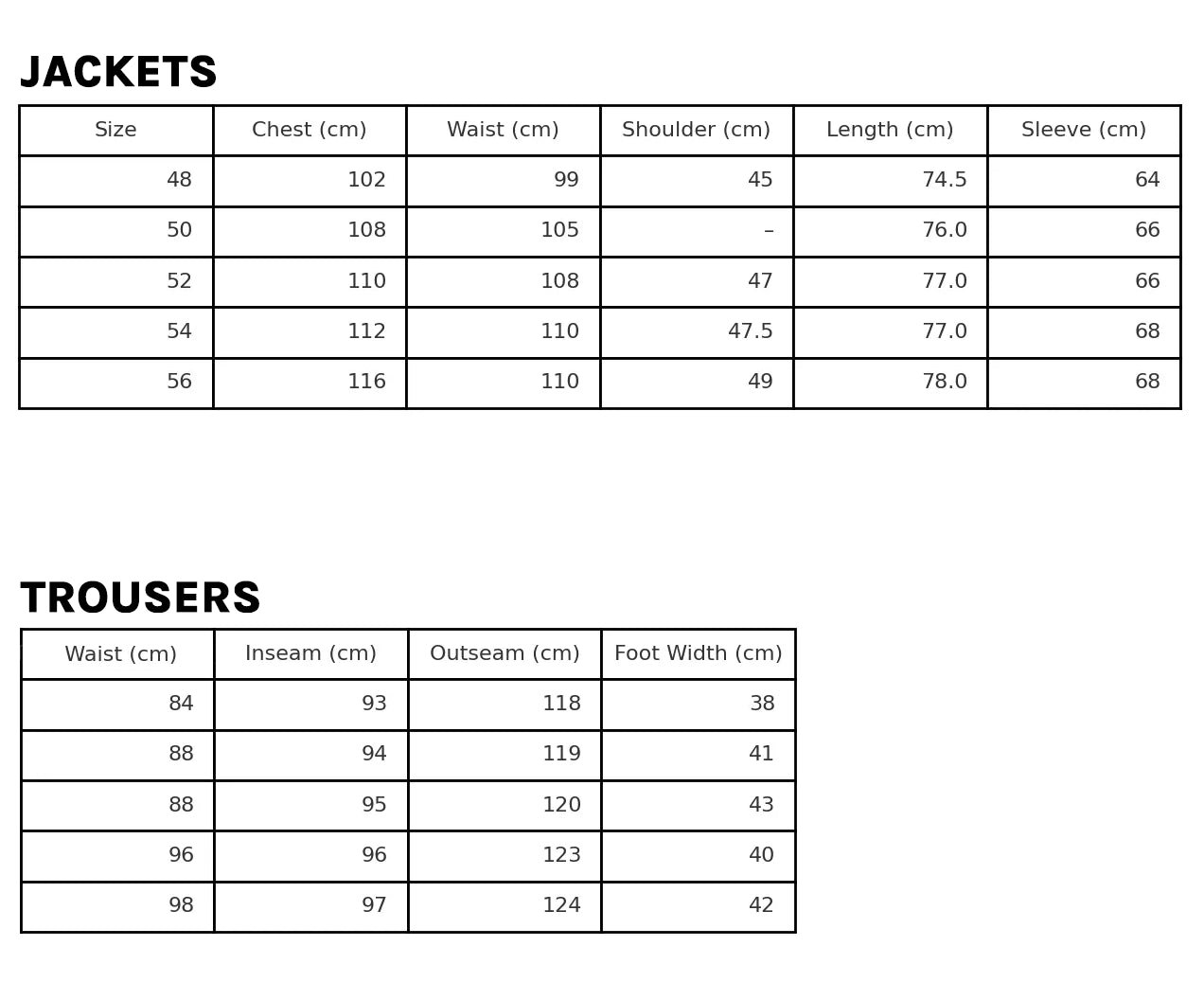 Size Table